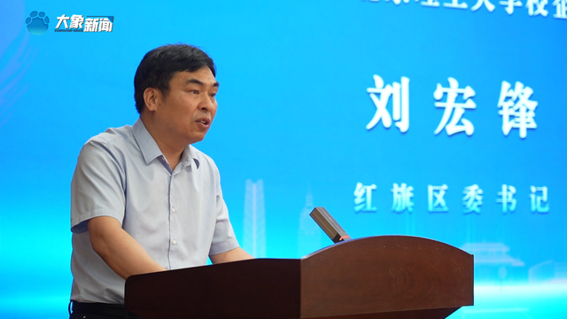 红旗区委书记刘宏锋从文化历史、交通、产业基础、科创资源等方面,作红旗区区情介绍。“区内驻有5所高校,各类在校生超10万人。实施智慧岛、创新岛、金融岛‘三岛’同构,金融和类金融机构超100家,拥有省市创新平台155家,技术合同登记交易额持续居全市第一位。”