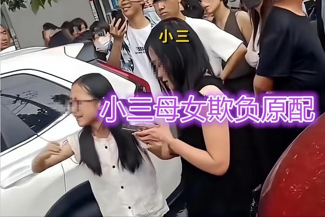 这原配大姐也够刚,直接往车引擎盖上一坐,说什么都不让走。结果,那边小三牵着孩子过来了,小三的小姑娘跟装了弹簧似的,上去就对着原配的胳膊又掐又拧,嘴里还喊着“你走开!这是我妈的车!”原配委屈得直掉眼泪,可看着孩子又不敢还手,只能哭着说:“这车是我老公买的!”