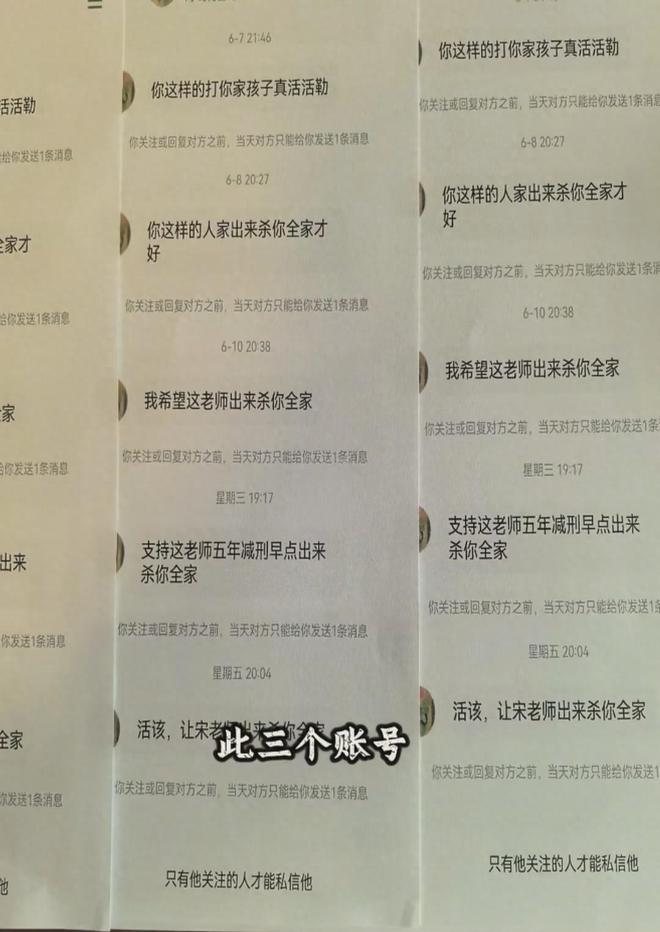 长沙那个被老师打碎头骨的9岁女孩妈妈,最近又遭遇了让人脊背发凉的事。6月19号,她在社交平台发视频说收到了死亡威胁,三个河北IP的账号齐刷刷留言:“宋老师减刑出来杀你全家”。这话说得人头皮发麻,当妈的心一下子揪紧了——本来孩子遭的罪就够让人心碎,现在还要担心自己和家人的安全,搁谁身上能受得了?