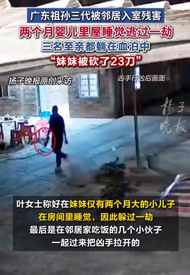 最近,广东廉江一个村子里发生了件让人脊背发凉的事。三月底的一个傍晚,天刚擦黑,同村的叶某志摸进邻居家,把屋里的祖孙三人给杀了。被害的是七十岁的老太太、三十多岁的年轻妈妈(被砍23刀),还有她才两岁的孩子。后来家里人说,当时襁褓里还有个两个月大的婴儿,因为在里屋睡觉才躲过一劫。这事儿搁谁身上都觉得憋屈——好好的一家人,怎么就遭了这种横祸?