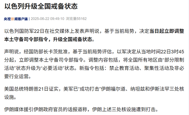 据央视新闻,当地时间22日,伊朗库姆省安全部门称,在美军袭击附近的福尔多核设施后,该省库姆市内“完全平静”,同时也呼吁民众保持冷静,不要相信谣言。