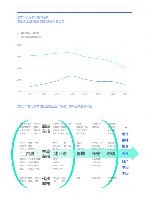 海外品牌占大盘与新能源的份额跌至40%、10%,吉利与比亚迪的“硬刚”,迫使海外品牌把2025-2026年新节能战略的试水期变成决战期