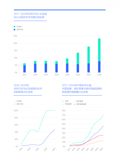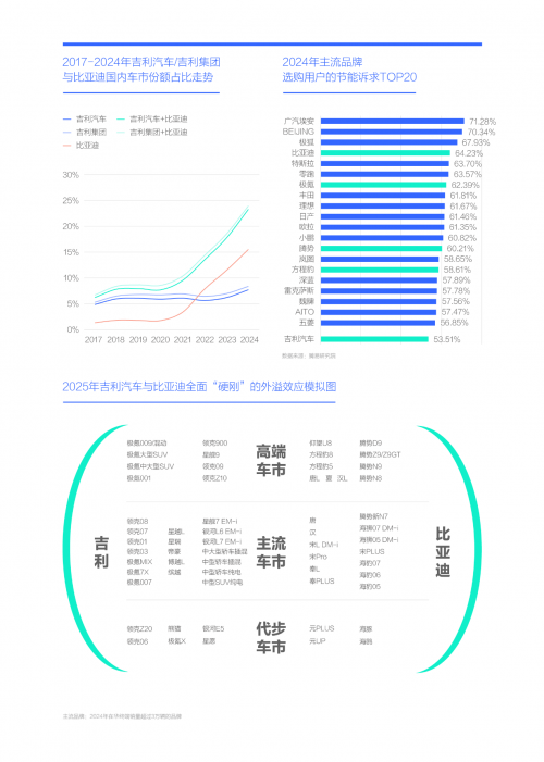2024年吉利与比亚迪占了中国品牌近40%份额,两者“硬刚”将重塑中国品牌阵营与助推2025-2026年中国品牌全面节能化