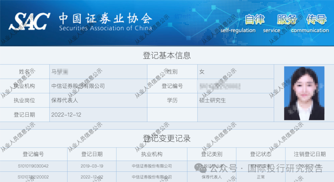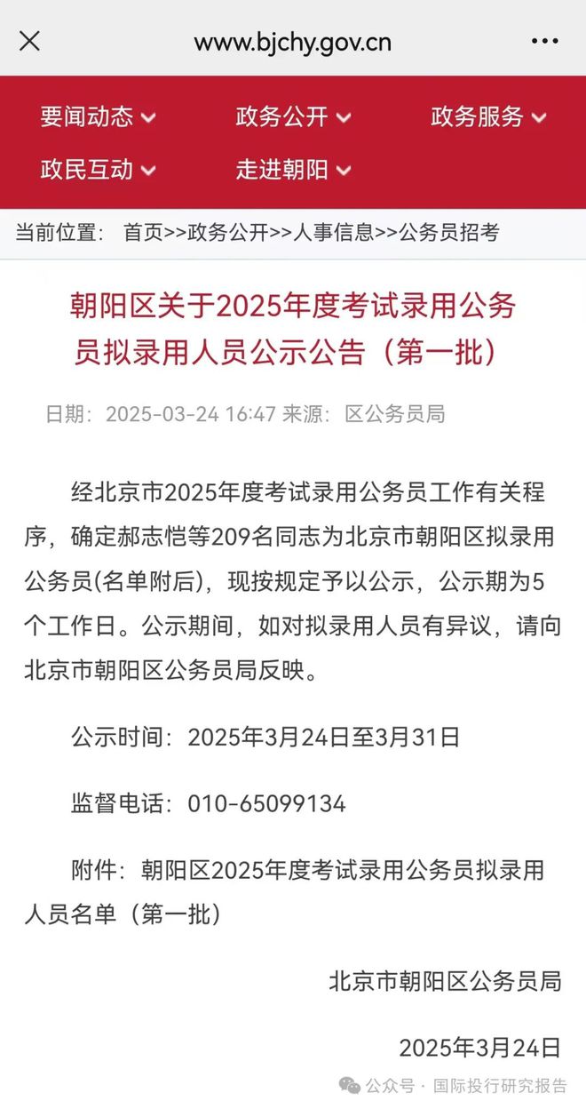 北京朝阳区公务员录用公示显示,原中信证券保荐人马**已经录取为朝阳区发改委综合管理岗。