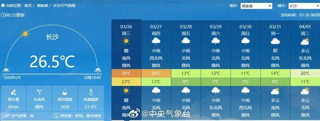 今天湖南气温将继续冲高