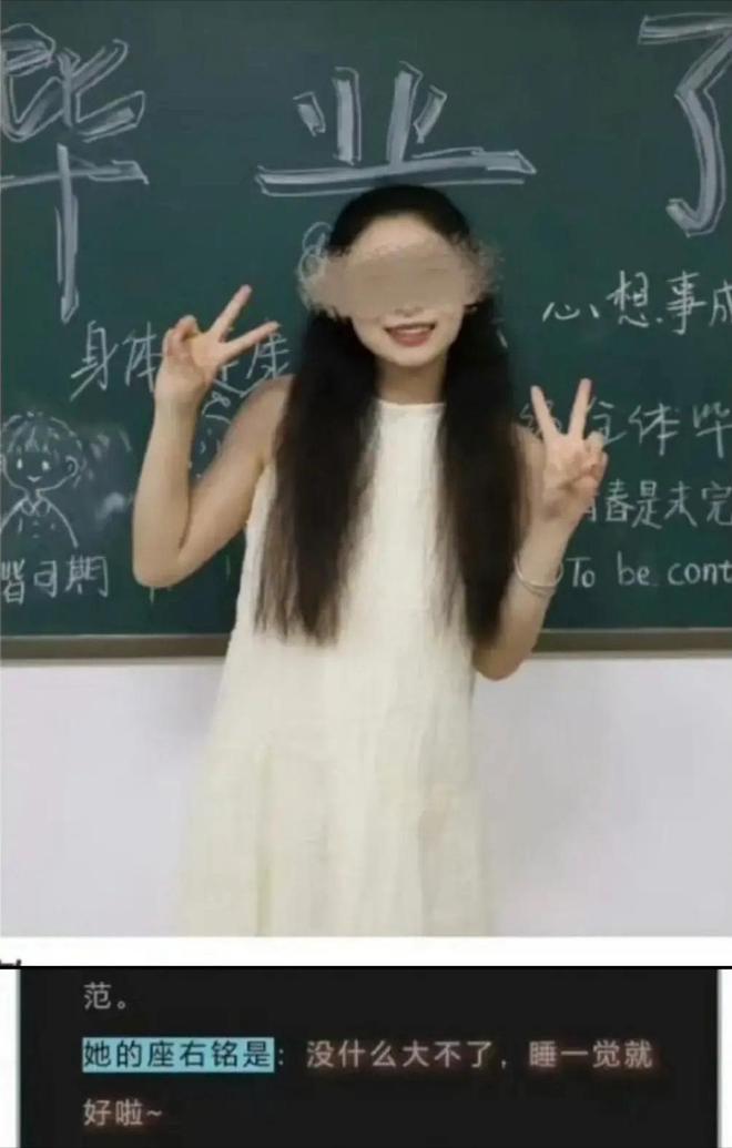 据称,女学生罗某还有座右铭,她的座右铭从图片中就可以看出。
