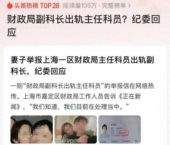 故事的主人公是上海的一位女士,她经过长时间的痛苦挣扎,最终鼓起勇气实名举报了自己的丈夫赵某。赵某是嘉定区财政局的主任科员,本应有着安稳的工作和幸福的家庭,却没想到卷入了一场令人咋舌的桃色风波。而和他传出不正当关系的,竟然是同单位的女领导王某,王某还是个副科长。这就很让人费解了,从职位权力来看,赵某对王某的升职之路似乎起不到关键作用,既不能决定项目分配,也无法在考核晋升中拍板定案。那么,赵某到底有什么独特魅力,能让女领导王某对他另眼相看,甚至发展到逾越道德底线的关系呢?这一谜团,瞬间勾起了大众强烈的好奇心,大家纷纷猜测背后的隐情。
