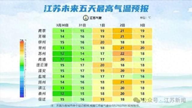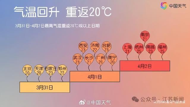 4月1日,江苏大部分地区最高气温都将回到18-20℃附近。