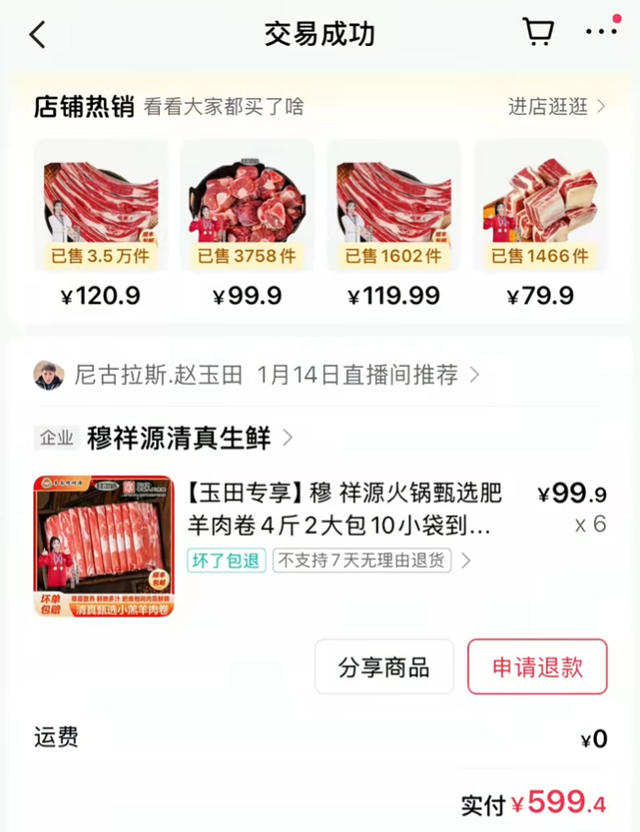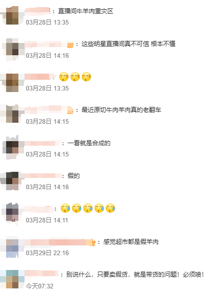 不少网友表示,直播间售卖的牛羊肉卷经常翻车。