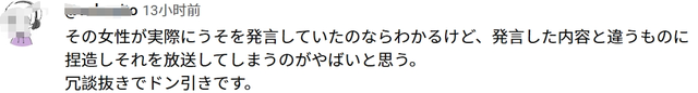 值得一提的是,日本《放送法》第四条明确规定,电视节目不得歪曲事实,应以客观、公正为基本原则。而该节目此次明显违反这一法律条文,不过,目前,尚不清楚监管机构是否将介入调查。
