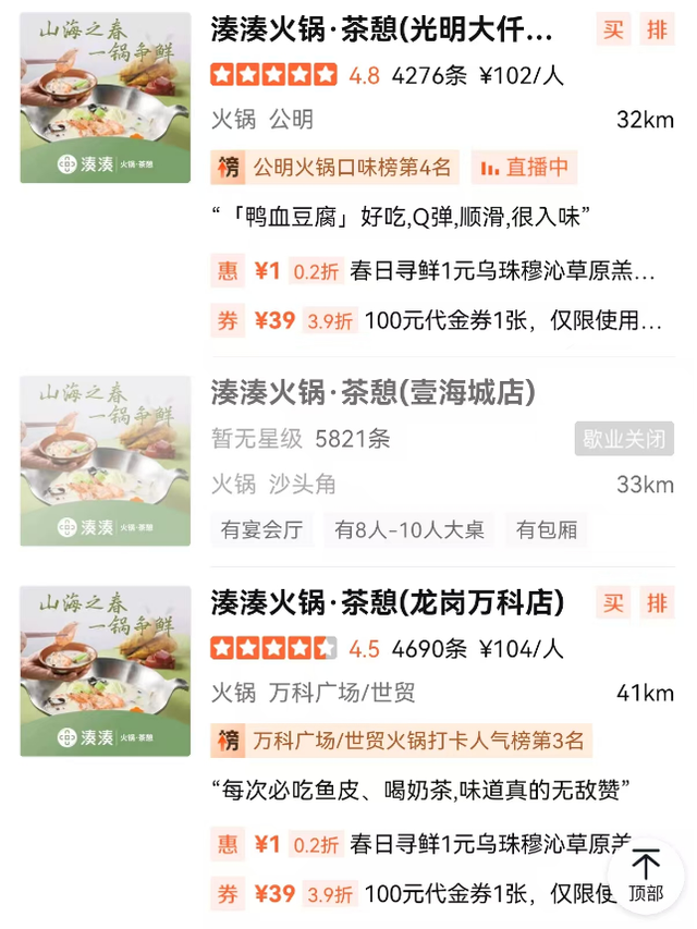 2024年,湊湊新开餐厅13家,关闭餐厅73家,门店数净减少60家,截至2024年年底,湊湊门店数为197家。这也是湊湊餐厅数首次出现年度负增长,同时也是其闭店数最多的一年。2023年,湊湊关闭15家餐厅,新开48家餐厅;2022年,湊湊关闭3家餐厅,新开44家餐厅。