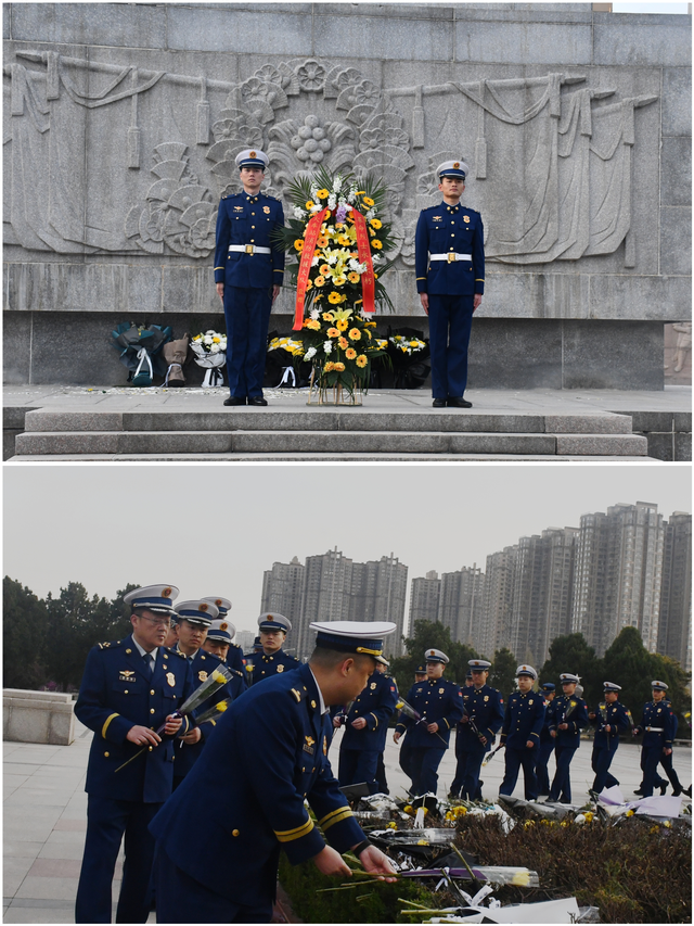 3月31日,在清明节到来之际,郑州火车站消防救援大队组织全体消防指战员前往郑州市烈士陵园开展“缅怀革命英烈,传承红色基因”主题党日活动,深切缅怀革命烈士的丰功伟绩和崇高精神。