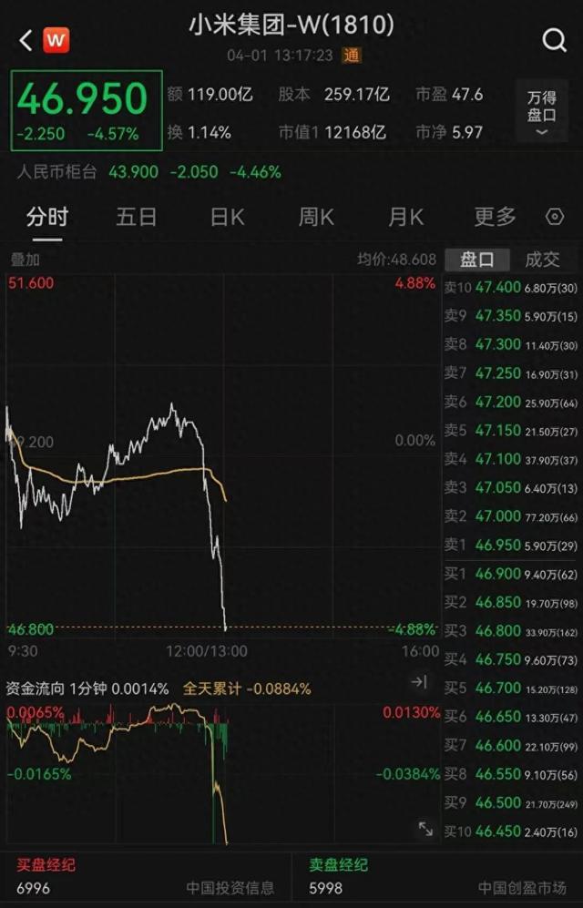 截至发稿,港股小米集团午后持续走低,股价现跌近5%,成交额超120亿港元。