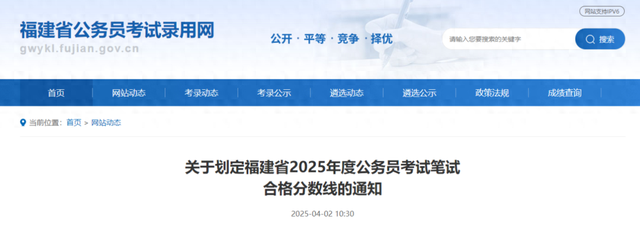 福建省2025年度公务员考试笔试合格分数线公布了!