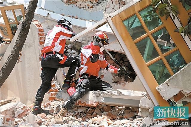 ■3月30日,在缅甸曼德勒,中国救援队队员在长城饭店开展救援。新华社发