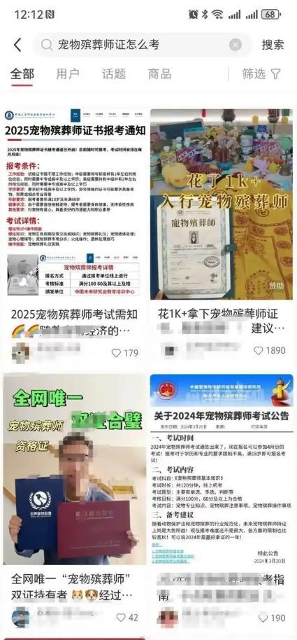 极目新闻记者在多个社交平台内搜索“宠物殡葬师”,的确出现了各种考证培训的账号,言语蛊惑性极强。“未来10年都是风口行业”“冷门小众行业很吃香”“月薪8000起跳,直逼一万五……”
