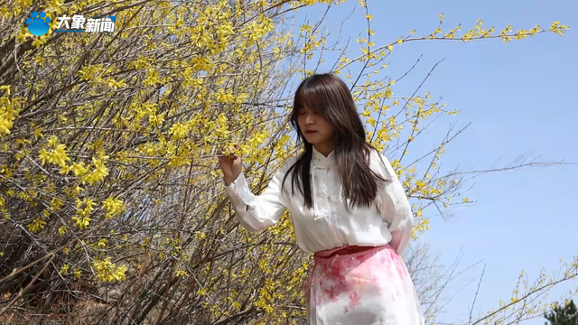 “最近天气回温,趁着周末,我和我的几个小伙伴们一起穿上漂亮的马面裙,来这边的连翘花海进行打卡拍照,心情也是非常愉悦,拍出来的照片也是美美的。”游客贾雪茹说。