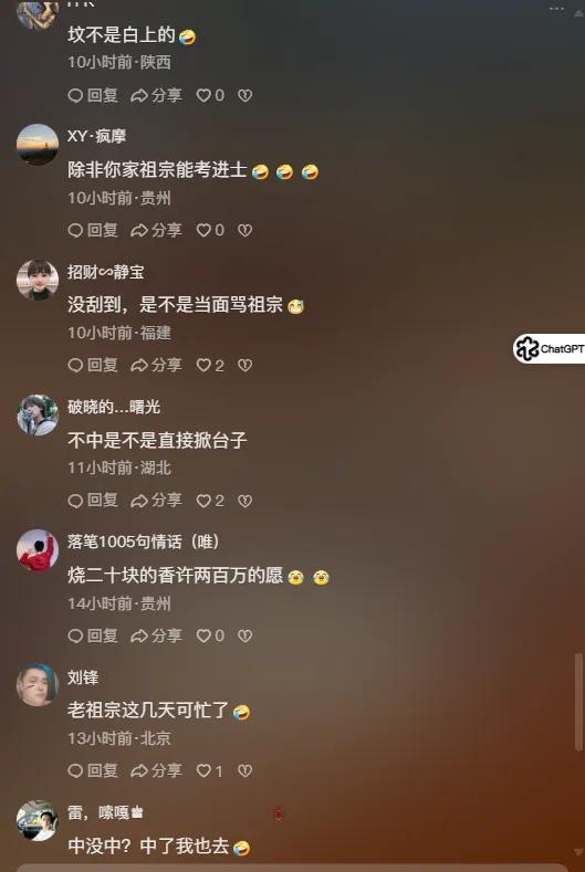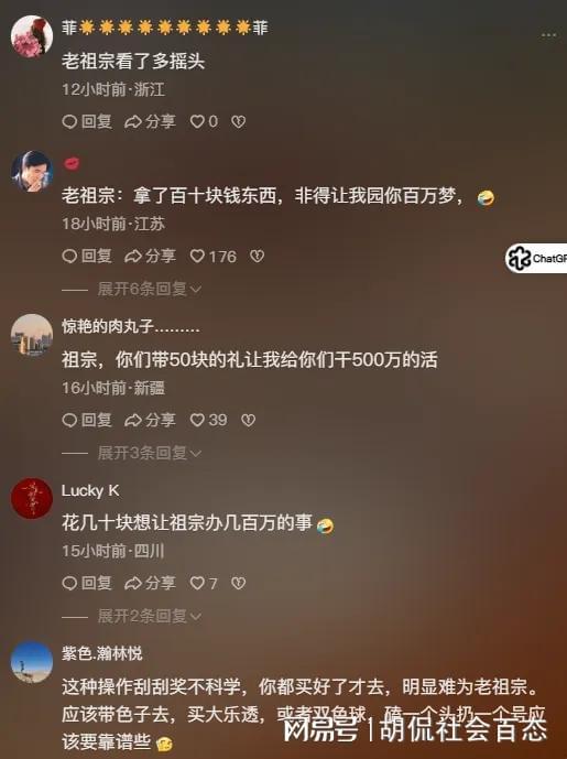 这一幕被传到网上后,网友们瞬间炸了锅,评论区瞬间成了欢乐的海洋。呼声最高的评论是:“花5块钱许500万的愿,老祖宗要有这本事,后辈们早就衣食无忧啦!”还有网友调侃道:“祖宗:来来来,你进来躺着,这事办不到啊!” 也有网友幽默地说:“祖宗: 现在人多嘴杂,子夜时分,单唠。”更有甚者放话:“没刮到500万,把祖宗的坟给掘了。” 有位网友无奈表示:“祖宗:真孙女,一年来一次,还来许愿。” 还有网友直言:“别说,这事我干过。”看来这独特的祭祖方式,还真不是个例。甚至有网友已经喊话彩票店:“业务渠道的来了!”