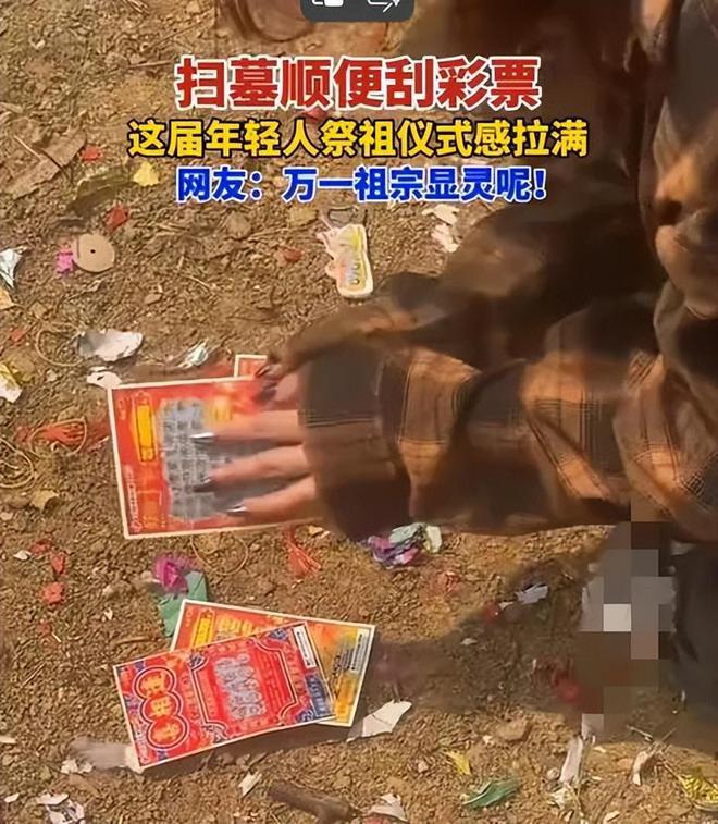 女子祭祖,竟在墓地狂刮彩票!知情人:烧五块的香,想中500万!