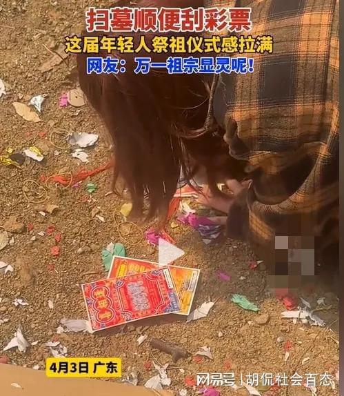 4月3日,广东的一处墓园里,上演了一场别样的“祭祀大戏”。只见两位女子,一位身着粉色防晒外套,头戴白色遮阳帽,另一位穿着格子衬衣,她们没有像旁人一样,在墓前规规矩矩地摆祭品、烧纸钱,而是双双趴在地上,全神贯注地刮着彩票。那认真的模样,仿佛祖宗就在眼前,正等待着她们开奖的好消息。