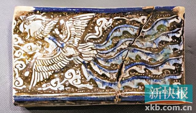 刘冬媚:挺多这样的例子,伊尔汗国时期四边形金色锡釉砖,在当时使用时四周应有装饰框。苏莱曼王座瓷砖先用印模压制成像,再上釉着彩,图案呈浮雕状,釉彩用青金色,龙凤是常见的图像。这一块砖虽然出土地点不明,但根据其风格可确定来自苏莱曼王座地区。该瓷砖为釉上彩,底色为白色,主色为金色,青金色为辅色,中央描绘了一只拥有五只尾羽振翅欲飞的中国凤凰,画面四周是中国的云纹和波浪纹,可见伊尔汗时期中国元素对伊朗艺术的影响。从现藏德黑兰大学穆卡达姆博物馆的“方形凤凰云纹釉砖”看出,它的载体是釉砖,是西域风格;而其纹饰是中国风格,体现了双方的交流与互动。