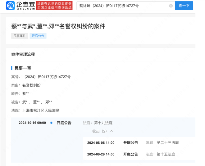 4月7日,蔡徐坤工作室发布声明表示,针对此前微博账号“超能摄影阳阳”、“懂瓜呱”等人在互联网上捏造不实信息,公开发表对蔡徐坤先生的诽谤性言论,相关案件已经由法院判决胜诉。当天,“蔡徐坤胜诉”话题一度冲上微博文娱榜热搜第一。4月7日,“超能摄影阳阳”“懂呱呱”以实名且手写道歉信的方式,在《上海法治报》刊登致歉声明,就2023年于微博等平台发布的不实信息,以及该不实信息造成的对蔡徐坤形象、社会声誉的损害“诚恳道歉”。据企查查信息显示,该名誉权纠纷案件于2024年8月6日起经历多次开庭。面对舆论的压力,蔡徐坤在沉默了数日后终于选择了正面回应。他通过个人社交媒体平台发表了一篇长文,详细阐述了事件的经过和自己的立场。蔡徐坤表示,自己与C女士的交往是双方自愿的,彼此之间的感情真挚而纯粹。他否认了网络上关于“强制堕胎”的传闻,并表示这是对他个人名誉的严重侵犯。对于网络上关于“打胎”的传闻,蔡徐坤表示这是一个极其敏感和私人的话题。他强调,自己尊重每个人的生命权和选择权,也尊重C女士的决定。他表示,自己从未要求C女士做出任何她不愿意的决定,更不可能强制她进行堕胎。他呼吁大家不要轻信网络上的谣言和传闻,以免对他人造成不必要的伤害。2024年8月,蔡徐坤因为此事起诉“超能摄影阳阳”“懂瓜呱”的名誉权纠纷案开庭,最终蔡徐坤迎来胜诉,“超能摄影阳阳”“懂瓜呱”致歉。而有网友也注意到,对于2023年6月江小宴的爆料,蔡徐坤则在2023年7月承认并表示“有过交往,私事已在2021年妥善解决”。(时代财经宋逸霆 综合自极目新闻、鲁中晨报、企查查、每日经济新闻)