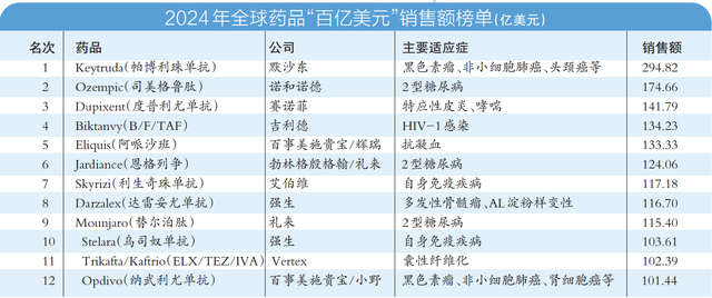 2024年销售额突破“百亿美元”的“超级重磅炸弹”药物从2023年的10款增至12款,再创新高。