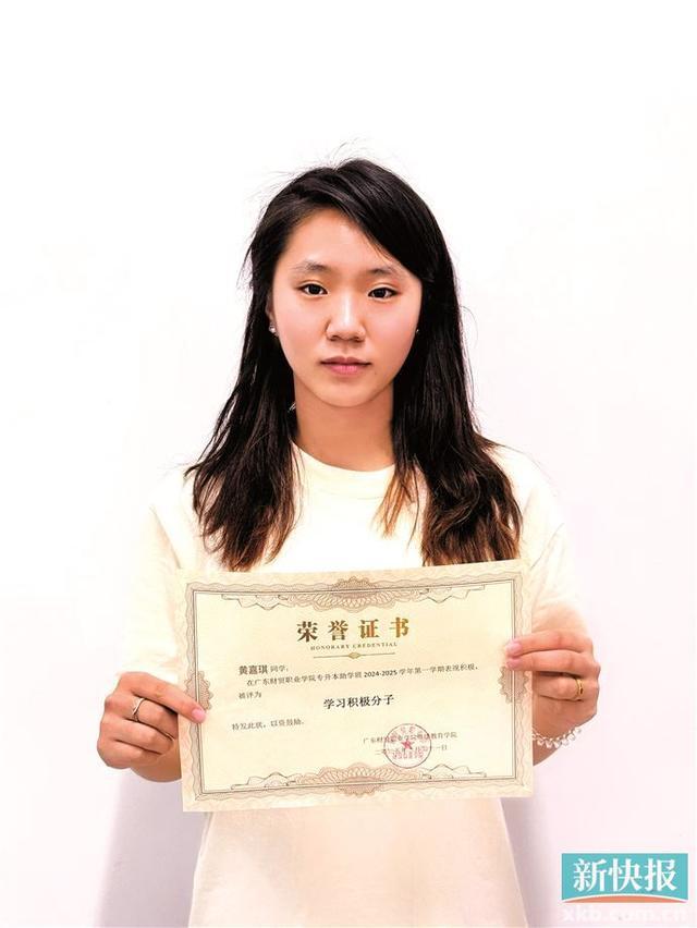 黄嘉琪在一线城市的公办学校读高中,成绩一直不错。高考没能考上本科,她坦言一开始心里确实有落差。入读广东财贸职业学院后,她接触到各种升学途径,于是很快就行动起来。她报读“相沟通”班的同时,也着手准备普通专升本。“普通专升本要到大三才考试,我想做好两手准备,先把‘相沟通’班的课程拿下,后边有时间就继续参加考试。”她说。