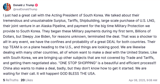 有意思的是,特朗普周二上午在Truth Social发帖称:“中国也非常希望达成协议,但他们不知道如何开始。我们正在等待他们的电话。”