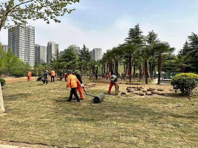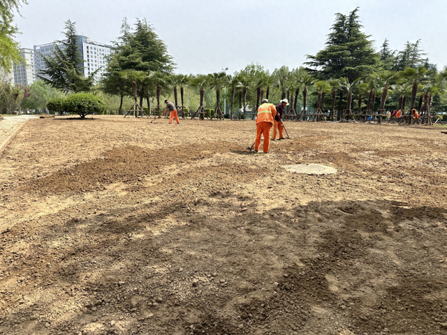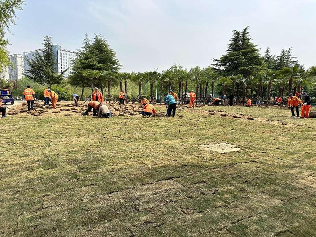 为进一步提升辖区中心广场绿化景观效果,巩固绿化成果,高新区紧抓绿化生长时机,有序开展广场公园草坪焕新工作。