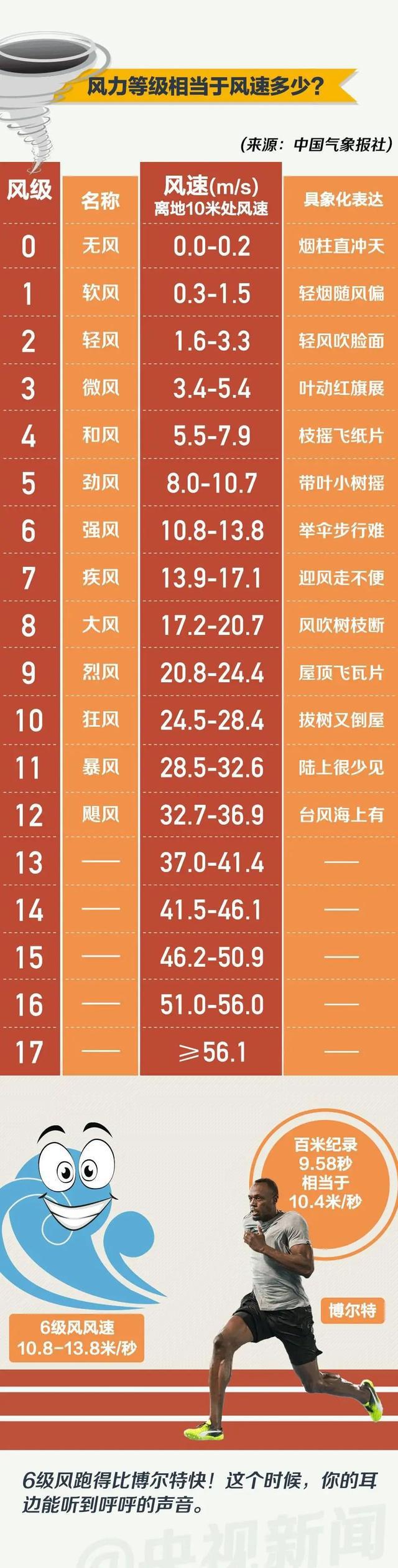 国家标准将风力等级依次划分为18个等级: