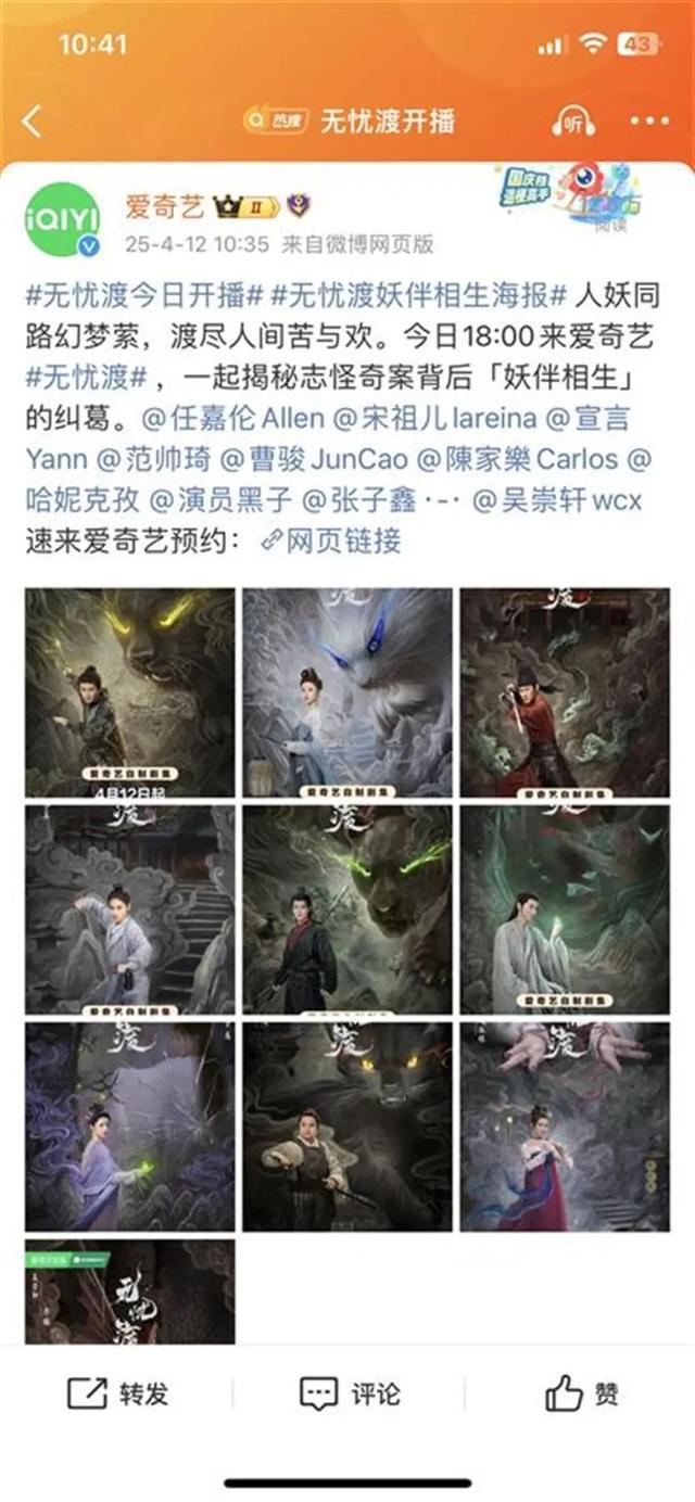 4月12日10:05,爱奇艺官方微博官宣《无忧渡》将在当晚6:00开播。极目新闻记者注意到,这是演员宋祖儿于2023年8月31日被实名举报涉税相关问题后,其“库存”影视作品的首次开播。该剧由任嘉伦、宋祖儿主演,此外,由张新成、宋祖儿主演的《艰难的制造》近期已下证,网友喊话:请赶紧把《折腰》(宋祖儿、刘宇宁主演)抬上来!