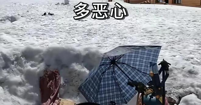 直到4月10号,有位博主大哥“田丰中国游”在网上发了一组垃圾照片,大家才知道咋回事。照片里的西藏,跟咱们想象的完全不一样。雪白的雪地里,全是冻住的火锅底料包装袋,红乎乎的残油把雪地染得到处都是。还有1米5深的大坑,成堆的塑料瓶、液化气罐,破桌椅扔得到处都是。木质观景台更惨,成了露天场,跟远处的雪山一对比,那叫一个刺眼。