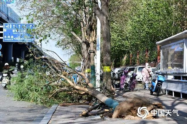 4月12日,石家庄遭遇强风,树木被刮倒。