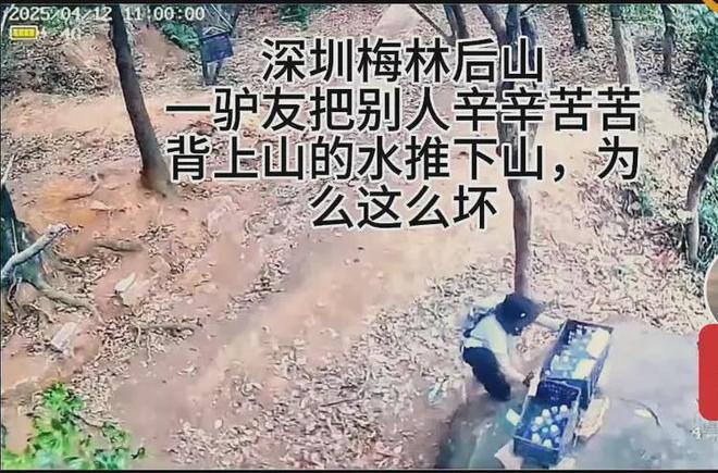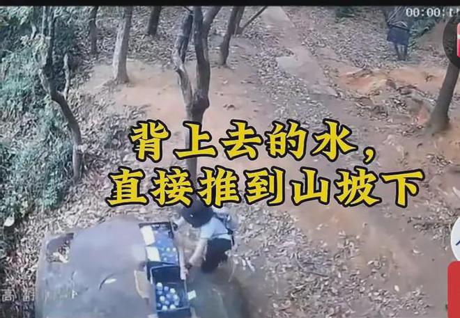 别人背上山的两箱矿泉水,竟被一女驴友故意推到山下,监控曝出