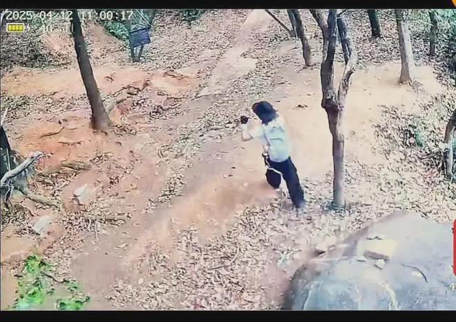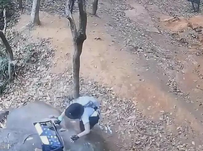 事情就发生在4月12号中午,监控里拍得明明白白:一个穿白衣黑裤、背着登山包的女子,走到路边岩石旁,盯着上面放的两箱矿泉水看了几眼。一开始大家还以为她是口渴了想拿瓶水喝,谁知道她上去就开始推箱子。rocks上的箱子挺沉,她推了几下没动,干脆爬上石头,蹲下身使足了劲儿,硬是把整箱水给推下了山坡。完事儿她拍拍手,跟个没事人似的继续上山,那叫一个淡定。