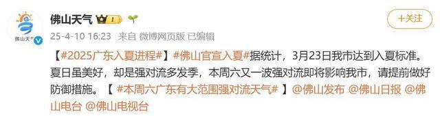 广东多座城市在4月15日官宣已在4月8日进入夏季。
