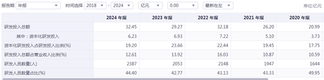研发投入方面,2020年至2024年,韦尔股份累计研发投入超140亿元。据悉,韦尔股份有一支超过2000人的研发团队,其中由虞仁荣亲自组建的“研发天团”更是备受瞩目。团队成员汇聚了清华EE85班的老同学以及众多优秀的设计师,技术储备和研发方面成果丰硕。