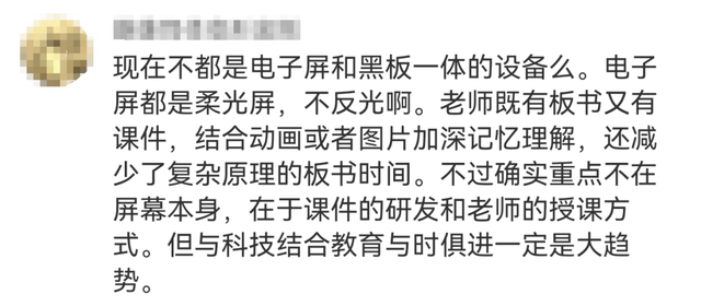 有网友觉得电子屏并没有问题,“与科技结合的教育与时俱进是大趋势”“新技术就应该用在教书育人上”。