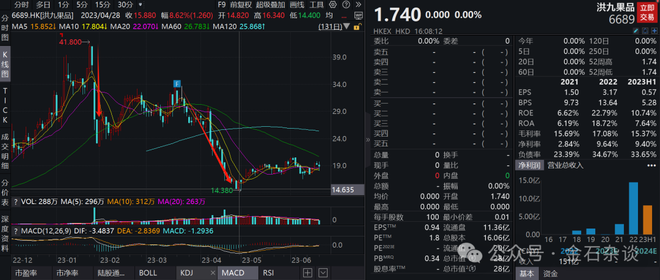 到了2024年3月20日, 洪九果品 股票因发不出2023年年报而被港交所停牌,公司股价随即跌至1.74港元停牌至今。