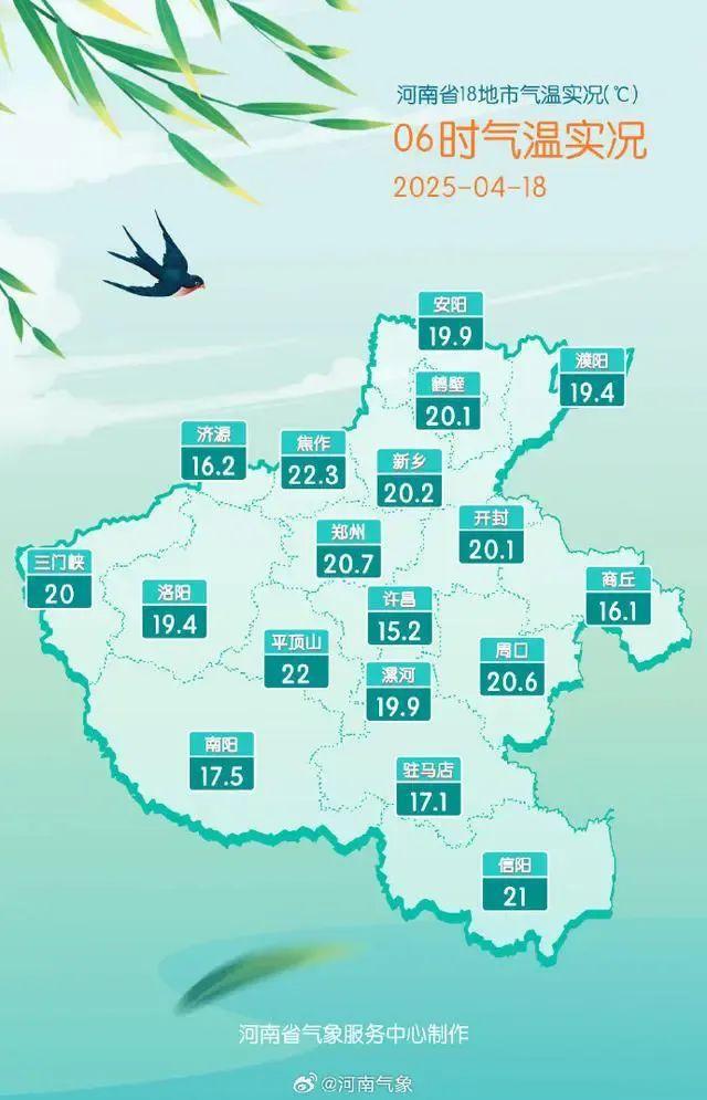 郑州市气象台2025年4月18日10时35分发布大风蓝色预警信号:预计今天白天到夜里,郑州市主城区、航空港区、上街区所辖乡镇及街道有4级东北风,阵风7-8级,局地可达9级以上,主要强风时段在傍晚到前半夜。请注意防范。