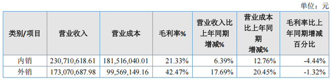 从地域分布看,公司境内销售毛利率分别为25.93%、25.77%和21.32%,境外销售毛利率分别为40.41%、43.78%和42.47%。