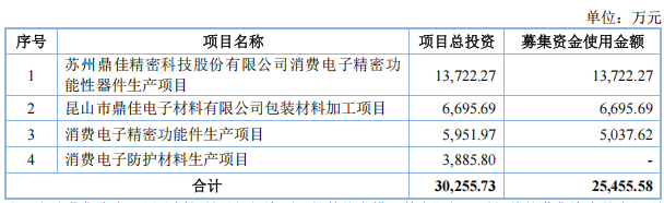 此次IPO,鼎佳精密计划募投项目产能增幅较大。其中,苏州鼎佳精密科技股份有限公司消费电子精密功能性器件生产项目拟投资13,722.27万元,建设期为2年,完全达产后,预计新增消费电子功能性器件生产规模约150,000万件/年。