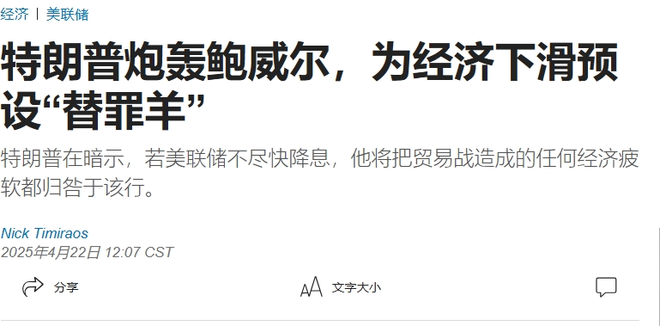 鲍威尔恐成经济下滑“替罪羊”!特朗普一直搞事
