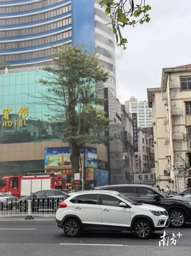 4月23日早上,位于广州市越秀区环市东路的远洋宾馆大楼发生火灾。