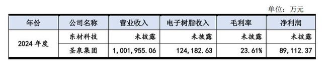 同宇新材在招股书中列举出公司性质、主营业务、业绩、产品用途等方面较具可比性的其他公司,包括宏昌电子材料股份有限公司(以下简称“宏昌电子”)、济南圣泉集团股份有限公司(以下简称“圣泉集团”)、四川东材科技集团股份有限公司(以下简称“东材科技”)。