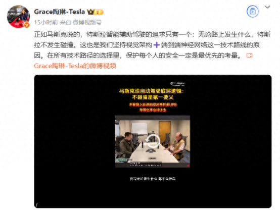 特斯拉公司副总裁陶琳4月23日通过微博发布了一段马斯克关于智能辅助驾驶的观点。