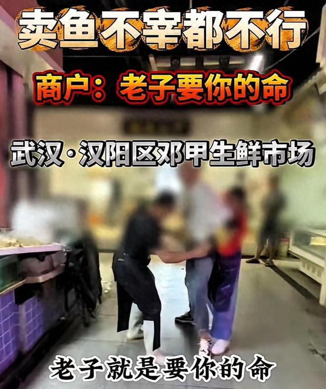 买鱼不杀就被砸秤砣?这事儿搁谁身上不后怕?最近武汉汉阳邓甲生鲜市场的一场冲突,看得人心里直发紧。一个顾客好好买鱼,就因为说句“别杀”,卖鱼的老板突然跟变了个人似的,抄起紫铜秤砣就砸向顾客小腿,嘴里还骂骂咧咧喊着“不杀就是来找茬,信不信我弄死你”,吓得周围人赶紧往后躲。好好的菜市场咋成了火药桶?这背后的弯弯绕绕,真是越想越不简单。