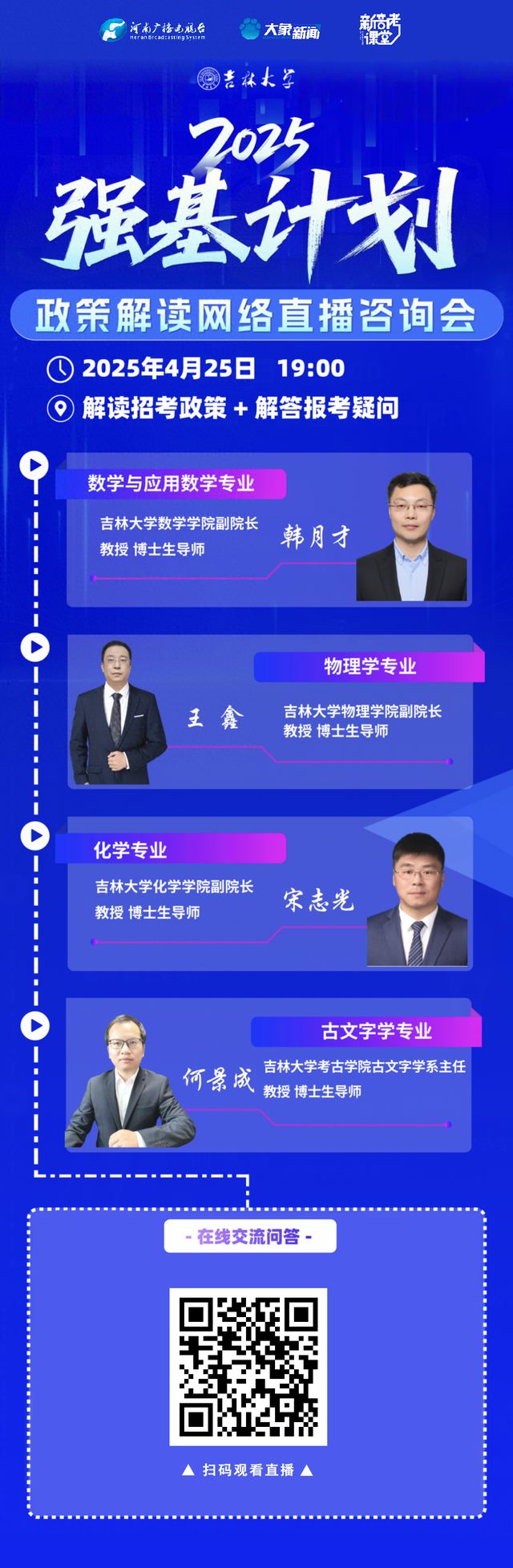 新高考课堂直播预告丨吉林大学4月25日强基计划全解读
