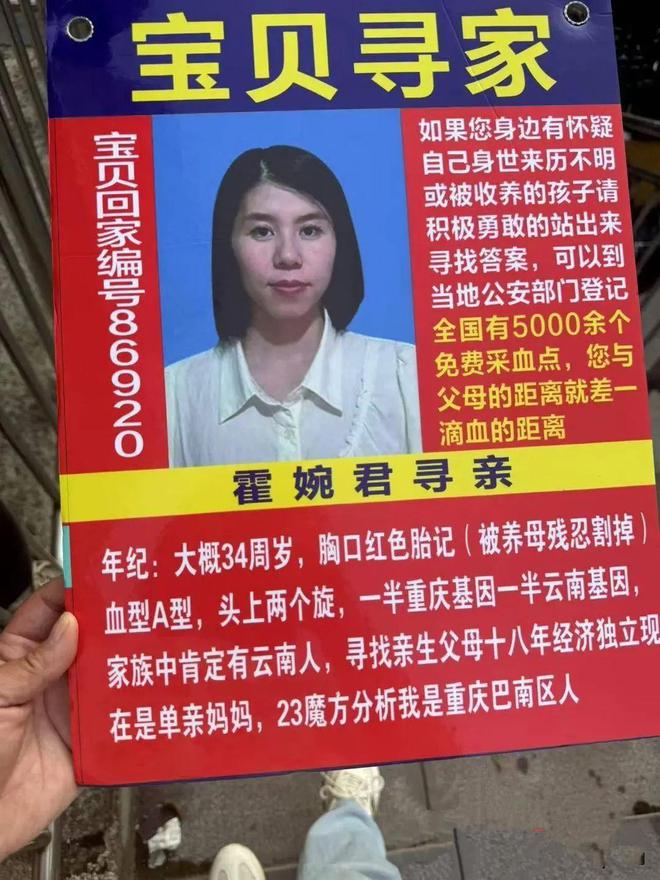 去年冬天,她咬咬牙拍了条视频:举着两本房产证站在小区楼下,背后是儿子画的“全家福”(画里只有她和儿子)。“我有房有工作,不图钱不图利,就想知道自己生日是哪天,父母叫啥名。”评论区炸开了锅,有人说“傻丫头,养母对你不好,亲生父母说不定当年是重男轻女扔了你”,也有人私信她“我帮你扩散,咱们重庆人不丢孩子”。最让她破防的是条来自云南的留言:“我妈也有块跟你相似的疤,会不会是你姨妈?”